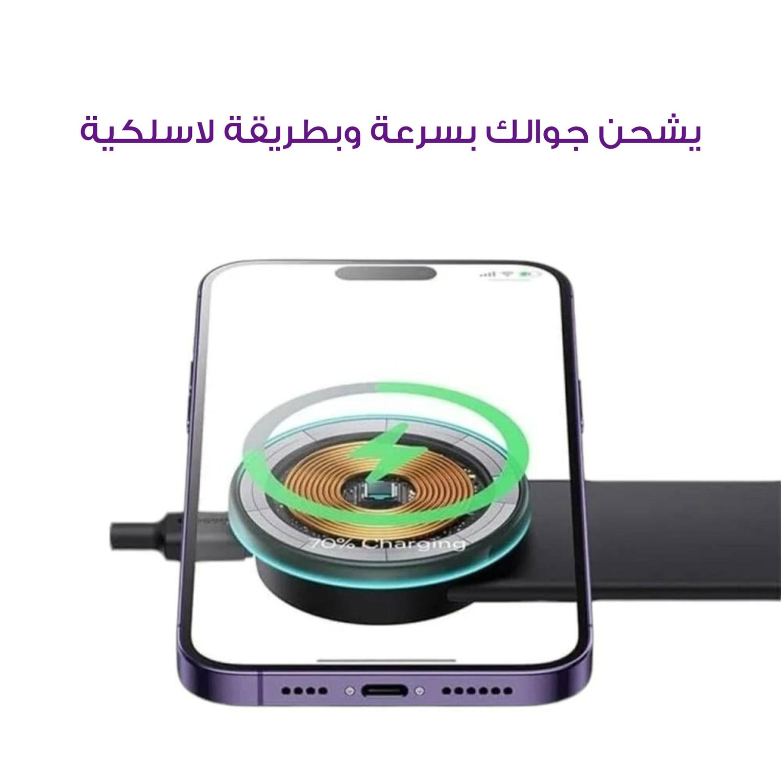 • يشحن جوالك بسرعة وبطريقة لاسلكية.ما يحتاج توصيل كيبل أو أسلاك متشابكة.